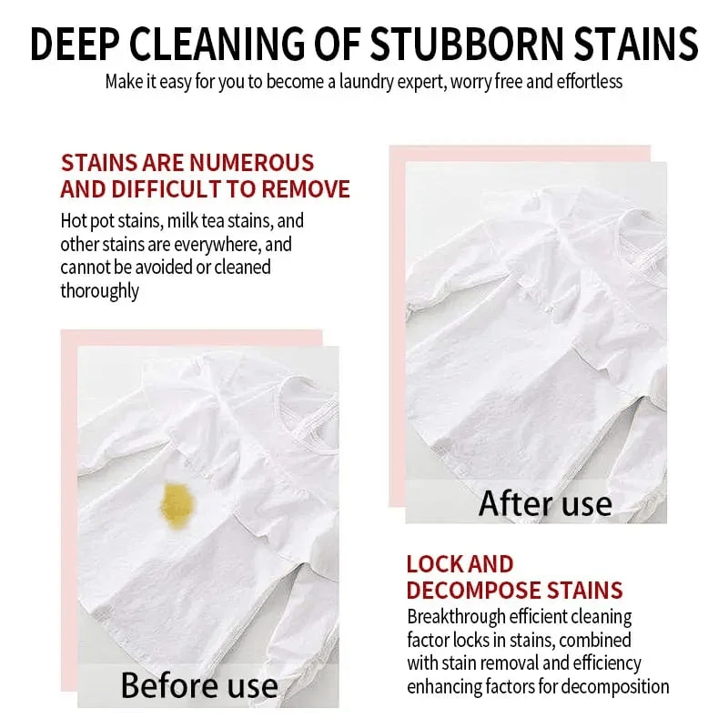 The moment it touches the fabric, the formula activates instantly—dissolving stains fast so you spend less time soaking or scrubbing. Perfect for busy households and last-minute laundry saves.